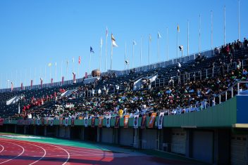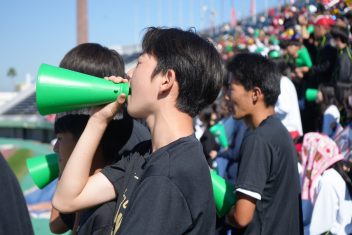 11月14日(金)サッカーの県大会準決勝、神村学園戦。10:00キックオフ。健闘むなしく敗れましたが、全校生徒が白波スタジアムに集結し、心をひとつにした応援をおくり続けました。