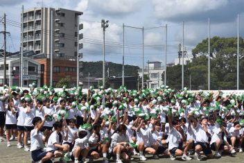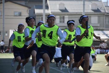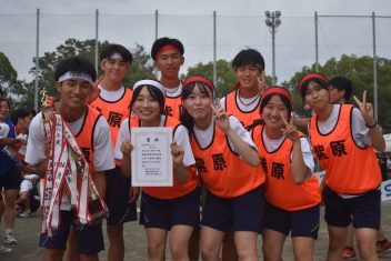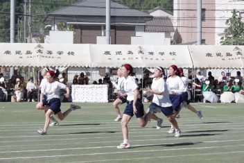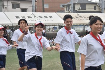 紅白対抗では赤組が優勝。学年を超えた学級対抗リレーでは、2年生の普通科5組、4組がワンツーフィニッシュ。そして、特筆すべきはなんと言っても、鹿高体育祭名物、出身中別リレーです。40校を越える各中学の卒業生が、母校の名誉をかけて激走。今年、頂点に立ったのは、紫原中学校でした。
