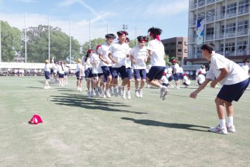 他にも見る人を魅了したのは、各学年のダンス。各学年500名を越える生徒が息を合わせて踊る姿は、体育祭を最高に盛り上げました。運動部の部活動紹介に続き、今年の国スポなど全国に挑む選手の激励会も合わせて行われ、活気に満ちた1日となりました。