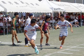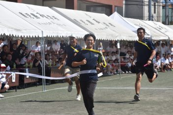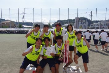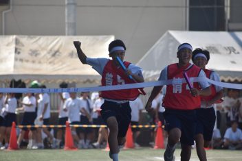 9月7日(土)晴天の中、第66回体育祭が行われました。5年ぶりに3学年揃っての1日開催となりました。和太鼓の力強い演奏で始まり、応援団によるエール交換で鼓舞された選手たちは気持ちを高めて各競技に挑みました。出身中別リレーでは、予行練習の際に予選が行われ、予選各組1位と2位の上位1チームが決勝レースを行い、川内南中学校が優勝しました。学級対抗リレーでは午前中の予選で上位となった7クラスで決勝が行われ、3年普通科3組が優勝となりました。また、各学年がオリジナルダンスを披露しました。