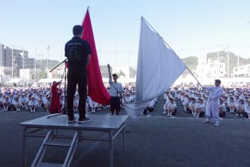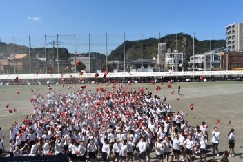 5年ぶりの応援団による応援合戦では、赤組団長濱田明梨さん(3年情報ビジネス科桜島中出身)、白組団長田中壱咲さん(3年普通科鴨池中出身)を中心に練習を積み重ねてきた演舞で、会場全体を大いに盛り上げました。結果は赤組851点、白組744点で赤組が優勝しました。