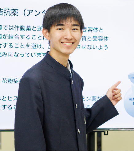 鹿高の普通科では苦手な教科を克服しながら、得意な教科をさらに伸ばすことができます。1年生の時は「医学と倫理」、「筋肉と力学」、「戦争と宗教」というテーマで探究を行いました。化学と生物について学ぶのが大好きなので、探究活動の時間はとても楽しく意義のあるものでした。鹿高は先生と生徒の距離が近く、授業で少しでも疑問に思ったことやわからないことは遠慮なく先生に聞くのが日常になっていますし、勉強以外の悩みや相談にも快く耳を傾けてもらうことも。鹿高での学びを通して医療の分野に興味が湧いたこともあり、その分野で役立つ化学・生物系を学べる国公立大学への進学を目指しています。進路実現のために全力でサポートしてくださる先生方の存在が頼もしい限りです。
